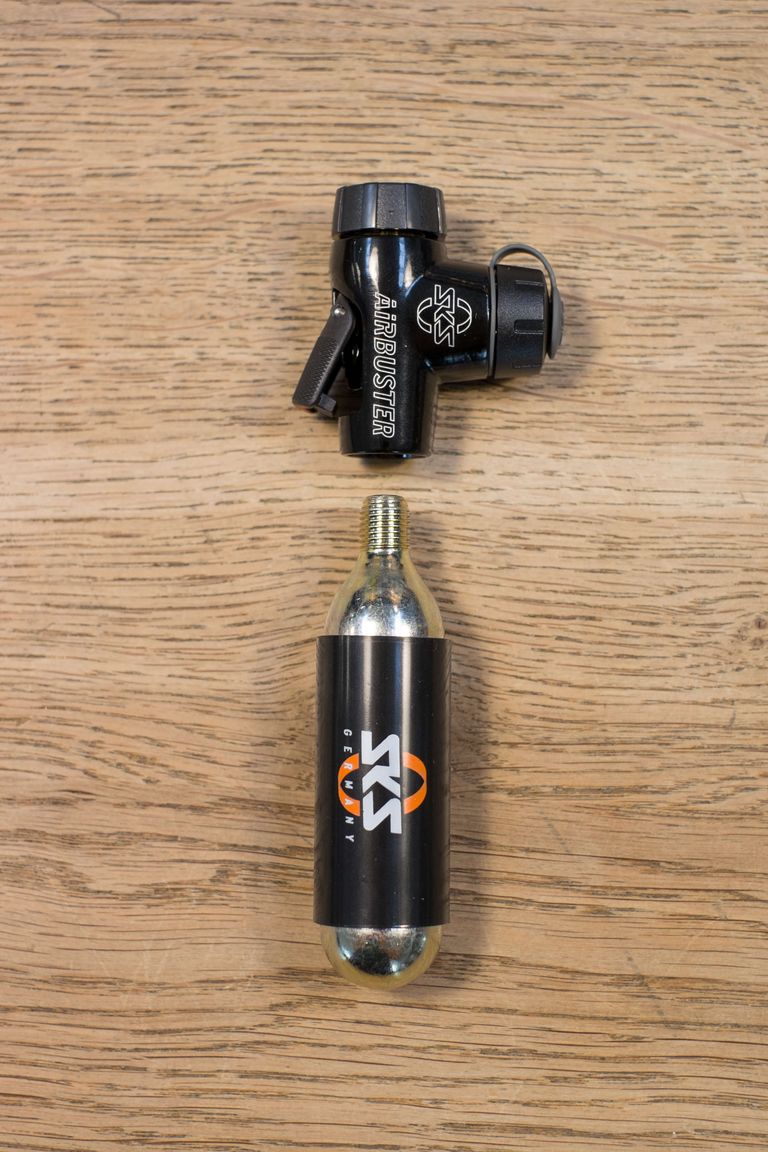 Mit einer Druckkartusche bekommt man die meisten Tubeless Reifen dazu, zurück auf das Felgenhorn zu springen.