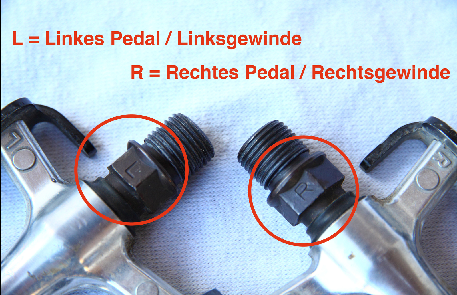 Spricht man am Fahrrad von rechter und linker Seite, so geht man immer von der Sicht des Fahrers aus. In Fahrtrichtung gesehen weist also das RECHTE Pedal ein Rechtsgewinde auf, und das LINKE Pedal ein Linksgewinde.