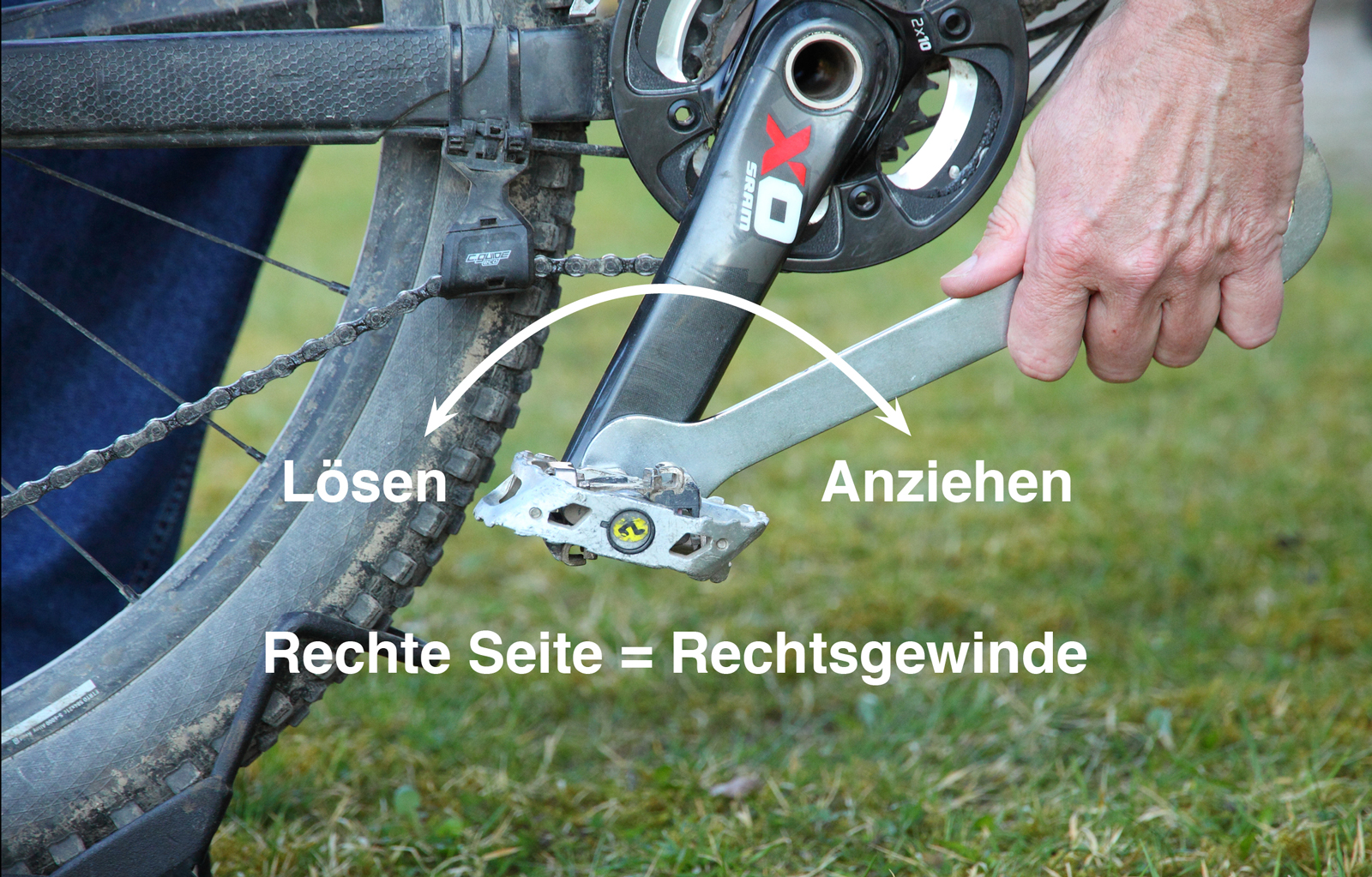 Der Knackpunkt: Unterschiedliche Gewinde an den Pedalen!