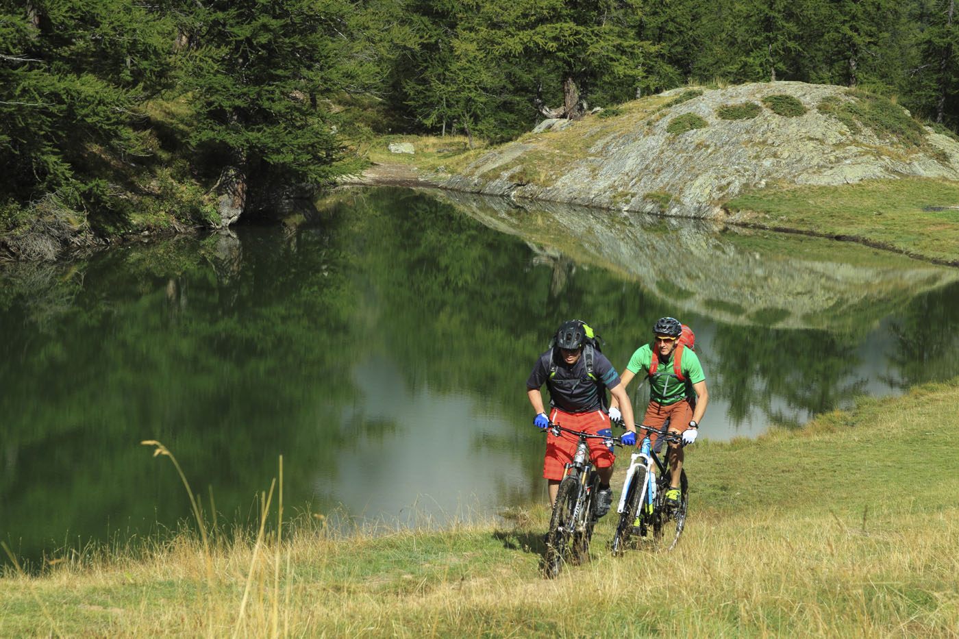 Peter Vogt empfiehlt, diese anstrengende Runde am Colle del Preit zu starten. Anfahrtsmöglichkeit mit dem Auto auf einem schmalen Sträßchen von Marmora über Canosio und Preit. Wer mit dem Bike hochkurbelt, muss zu den Tourdaten 10 Kilometer und 900 Höhenmeter addieren. Knackpunkt auf der Tour ist eine 45-minütige Schiebe- und Tragepassage zum Colle della Montagnetta. Am Colle del Preit nimmt man die Schotterpiste zum Rifugio Gardetta und weiter Richtung Passo della Gardetta. Am Pass links halten und weiter hoch zum Passo Rocca Brancia (2620 m). Die anspruchsvolle Singletrail-Abfahrt auf der Südseite des Rocca Brancia ist mit einer rot-weißen Markierung gekennzeichnet. Vorbei an einem kleinen See (Oserot), links halten, erreicht man nach weiterem Downhill eine unbewohnte Almhütte.