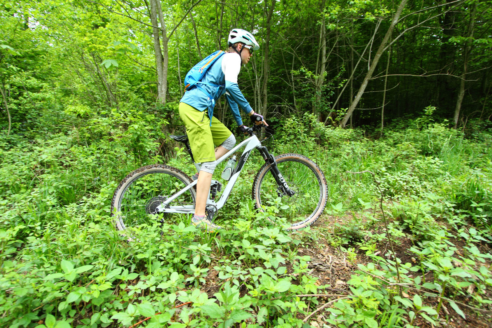 Bereits beim ersten Aufsitzen sieht und spürt man, dass das Konzept „Touren-Enduro“ schlüssig umgesetzt wurde. Die Testfahrerin sitzt mit einer angenehmen Mischung aus Komfort und einem gesunden Schuss Sportlichkeit im Sattel. Auffallend ist der mit 78 Zentimetern sehr breite Lenker in Kombination mit dem kurzen Vorbau. Auch wenn ein solches Cockpit völlig normal für ein modernes Fully ist, müssen sich Tourenfahrer, die vielleicht von einem vier- oder fünf Jahre älteren Bike her kommen, erst einmal daran gewöhnen. Aber spätestens auf der ersten Trail-Abfahrt werden sie die Kontrolle zu schätzen lernen, die der Lenker vermittelt.