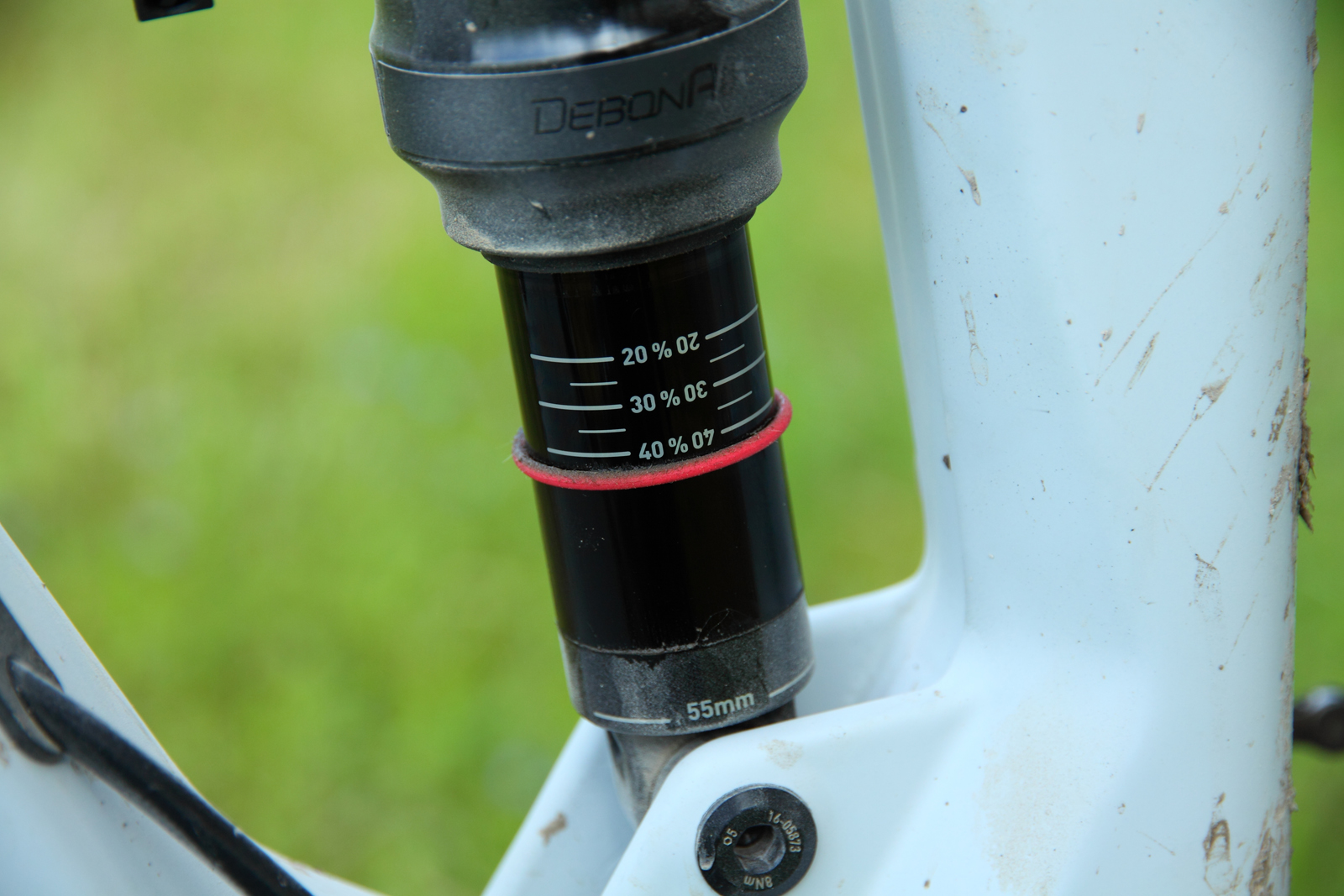 Wichtigster Wert bei der Abstimmung ist der so genannte SAG. Das heißt, wie weit das Fahrwerk einsinkt, wenn sich der Fahrer auf das Bike setzt (im Stand). Das gewährleistet, dass Dämpfer und Gabel in beide Richtungen arbeiten können. Dabei helfen verschiebbare Gummiringe und Skalen auf dem Kolben des Dämpfers und der Gabel-Standrohre. Je mehr SAG man dem Fahrwerk gönnt (z. B. 40%), desto höher ist der Komfort. Es gibt Markierungen für 20, 30 oder 40% SAG. Wie viel man letztendlich bevorzugt, gilt es im Gelände auszuprobieren. Deshalb unser Rat, die Dämpferpumpe auf die erste Tour mitzunehmen, um das Setup gegebenenfalls zu optimieren.