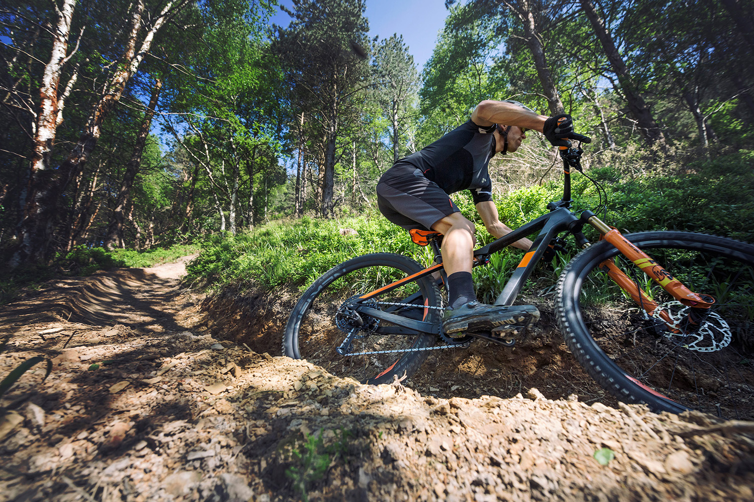 - Ein tiefer Sattel erlaubt es, auf steilen Abfahrten mit dem Gesäß weit übers Hinterrad zu gehen und so den Schwerpunkt zu verlagern. Genauso leicht kommt man wieder mit dem Gesäß nach vorne, ohne am Sattel hängenzubleiben.