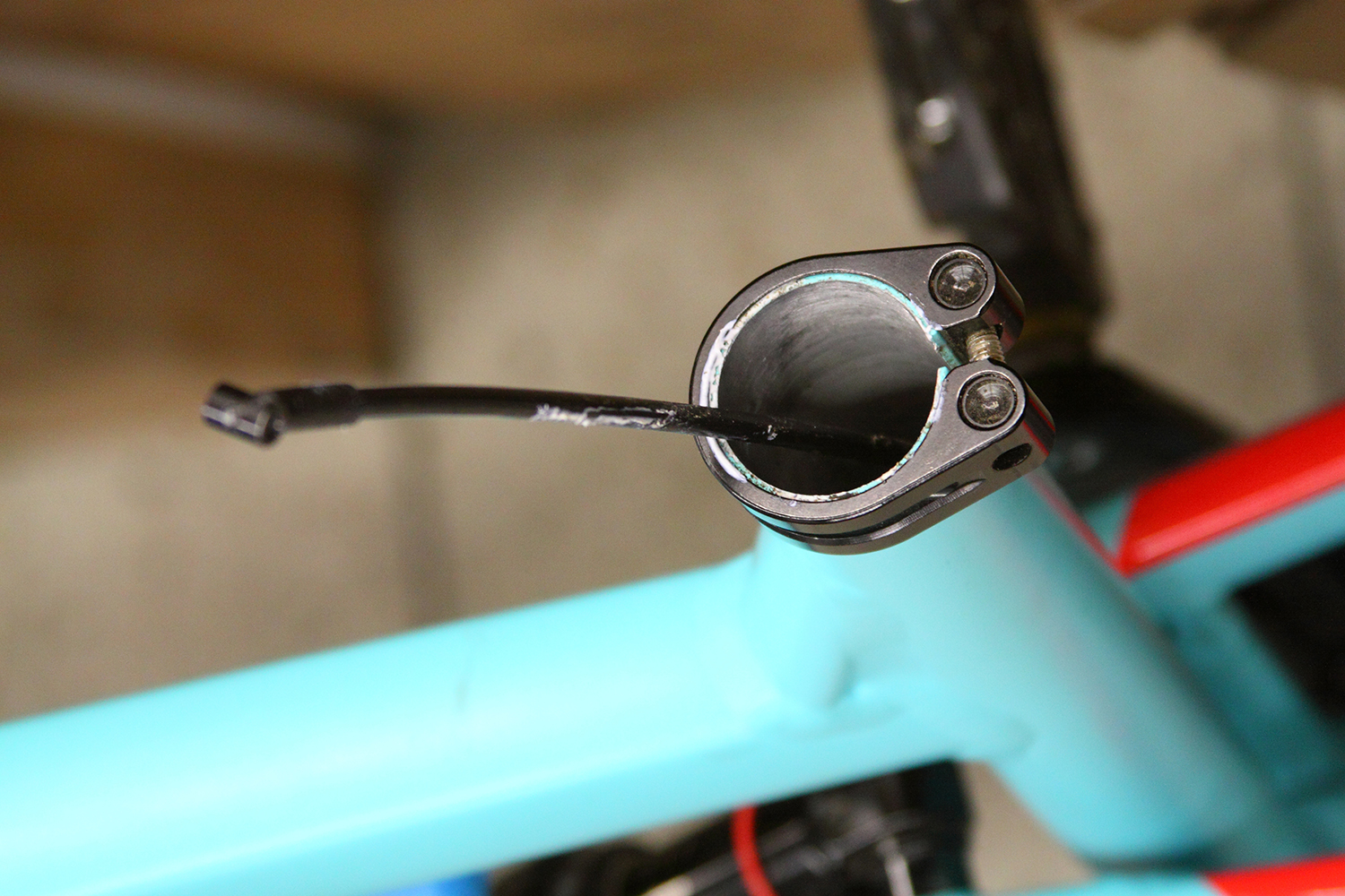Im Optimalfall läuft der Zug durch den Rahmen und endet im Sitzrohr. Nach Einhängen der Mechanik zieht man die Leitung zurück und versenkt die Stütze im Rohr.