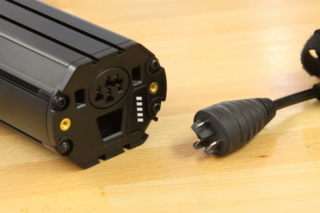 Wie bereits erwähnt, kannst du Lithium-Ionen-Akkus auch nachladen, wenn sie noch nicht ganz leer gefahren sind – und das ohne negative Memory-Effekte! Zudem sorgt die intelligente Elektronik am E-Bike selbst und auch die im Ladegerät dafür, dass es weder zu Überladung noch Tiefentladung kommt. Wichtig: Stets das Ladegerät verwenden, das der Hersteller zusammen mit dem Akku bzw. dem E-Bike liefert! Auf dem Unterrohr sitzende „externe“ Akkus müssen zum Laden abgenommen werden, weil die Steckverbindung zum Bike gleichzeitig die Ladebuchse ist.