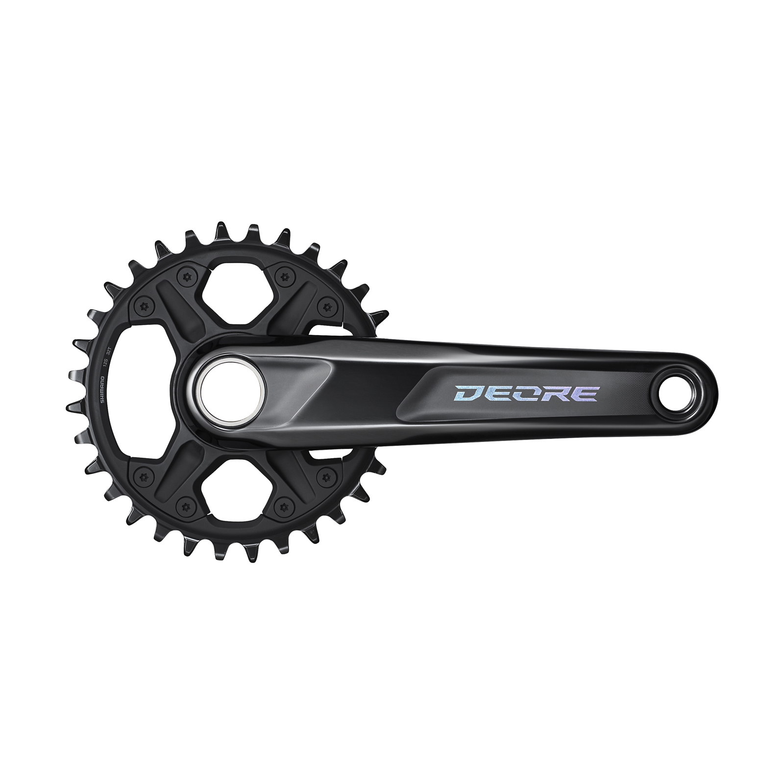 In Zeiten, wo Antriebe mit einem einzelnen Kettenblatt langsam aber sicher zum Standard am MTB werden, stehen Kurbeln und Schaltungen natürlich besonders im Fokus. Zu Recht, denn gerade in diesem Punkt hat Shimano die Deore auf den neuesten Stand der Technik gebracht. Bisher lediglich mit Doppel- oder Dreifach-Kettenblatt erhältlich, gibt es die Deore Kurbel jetzt auch in einer Einfach-Version. Das Kettenblatt wahlweise mit 30 oder 32 Zähnen. Die eingesetzten Technologien wie das Dynamic Chain Engagement (speziell geformte Zähne für sicheren und leisen Lauf der Kette) und Direct-Mount (zentrale Befestigung an der Kurbel) sind dieselben, wie bei den Top-Gruppen bis hinauf zur XTR. Info: Parallel dazu sind die 11- und 10-fach Versionen der Deore weiterhin im Shimano Programm (alternativ mit Ein- oder Zweifach-Kurbel).