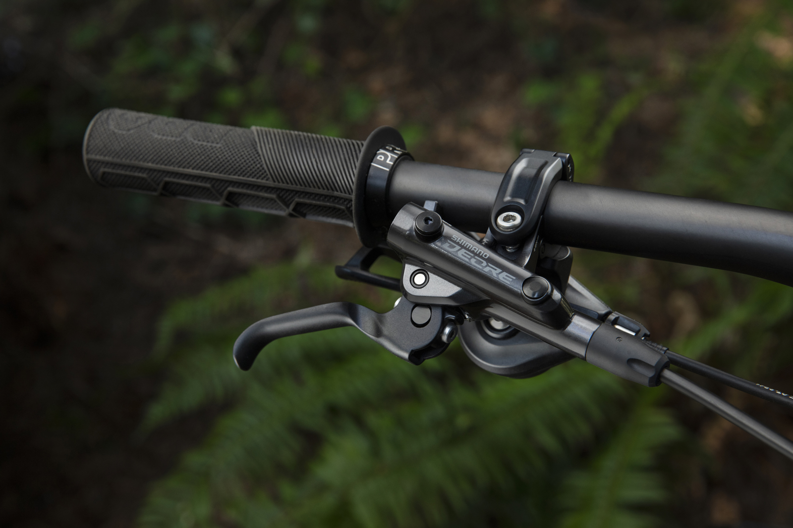 Mit Präsentation des neuen 4-Kolben-Sattels stellt Shimano klar, dass die Deore Gruppe jetzt auch für sportlich-ambitionierte Biker eine interessante Option ist. Denn wer in Richtung Enduro unterwegs ist und stets nach den steilsten Abfahrten sucht, für den ist eine kraftvolle 4-Kolben-Bremse zumindest am Vorderrad Pflicht. Ob 2- oder 4-Kolben-Version – beide Bremsanlagen teilen sich denselben Bremshebel. Dessen neue, zusätzliche Abstützung am Lenker sorgt für eine steifere Konstruktion und damit bessere Kraftübertragung von den Fingern ins System. Zudem sind die Bremshebel mit der bewährten Servo Wave Technologie ausgestattet: Im ersten Teil des Hebelwegs werden die Beläge schnell nahe an die Scheiben führt. Im zweiten Teil stellt das System dann viel Hebelweg für den eigentlichen Bremsvorgang zur Verfügung. Der Vorteil: Mehr Leistung bei verbesserter Kontrolle. Um das neue Deore-Cockpit perfekt zu machen, bietet Shimano nun auch einen Remote-Hebel für Teleskop Sattelstützen an.