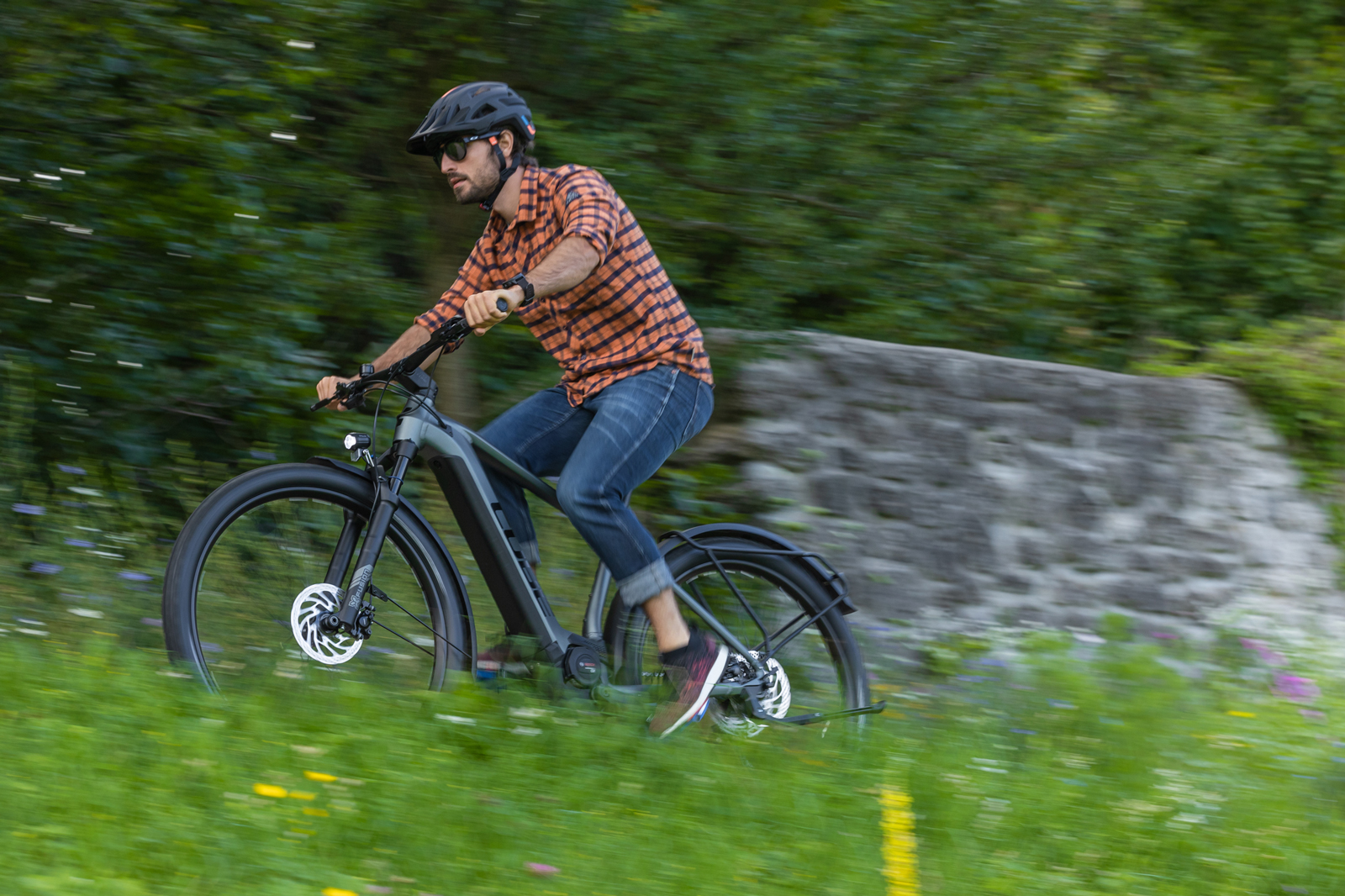 Trekking E-Bikes sind echte Allrounder und damit genauso auf Asphalt wie im leichten Gelände unterwegs. Je nach Modell kann sich ihr Einsatzbereich sogar stark mit dem eines Hardtail E-MTBs überschneiden, zum Beispiel bestückt mit 27.5-Zoll-Laufrädern und breiten Stollenreifen. Das ist abhängig von der Reifenfreiheit des Rahmens. Die Sitzposition ist sportlich-komfortabel, ideal für lange Touren mit und ohne Gepäck (Stichwort Reiserad!). Trekking E-Bikes machen aber auch in der Stadt einen guten Job. Oder als Auto-Ersatz für Pendler, die ein schnelles Bike für den täglichen Weg zur Arbeit suchen. Eine ideale All-in-One-Lösung.