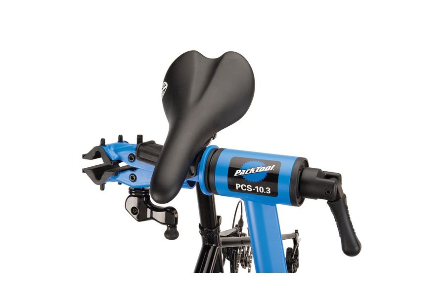 Der PCS-10.3 verfügt über eine integrierte, höhenverstellbare Teileablage sowie Zubehöranschlüsse für das Park Tool #106 Work Tray oder den PTH-1 Papierrollenhalter (beide separat erhältlich), so dass Ihre Werkzeuge und Kleinteile immer in Reichweite sind. Für die Lagerung und den Transport lässt sich der PCS-10.3 schnell zusammenklappen. Das leichtgängige Beinstützensystem zieht beide Beine mit einer einfachen Bewegung nach oben.