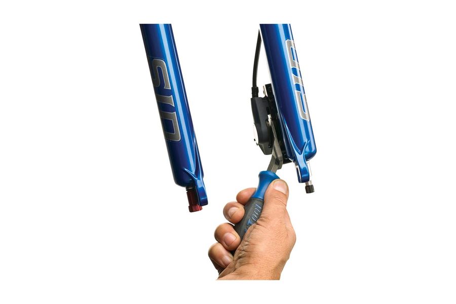Der einzigartige, keilförmige PP-1.2 gleitet in einen hydraulischen Scheibenbremssattel, um den Kolben beim Auswechseln der Beläge, Ausrichten der Beläge und bei anderen Wartungsvorgängen voreinzustellen. Macht die Wartung und Reparatur hydraulischer Scheibenbremsen schneller und einfacher.