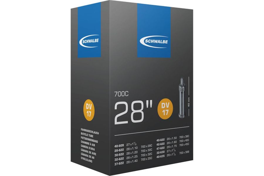 Der Schwalbe DV17 ist ein Ersatzschlauch für 28 Zoll (700c) Fahrradreifen mit Dunlop-Ventil. Der Butyl-Schlauch ist robust und wiegt rund 150g.