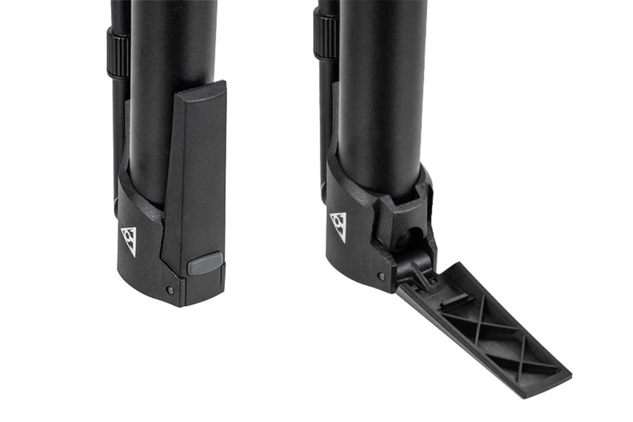 Geniale Kombination aus Stand- und Minipumpe. Schafft ohne große Mühen 160 psi / 11 bar. Auf dem ausklappbaren Manometer lässt sich der Luftdruck exakt ablesen und für mehr Standsicherheit ein Standfuß ausklappen. Ideal fürs Trainingslager. Durch Universalhalterung praktisch überall am Bike zu befestigen.
