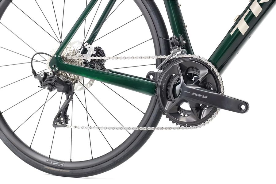 Das Domane SL 5 überzeugt durch eine durchdachte Ausstattung, die dir auf jeder Strecke den nötigen Vorteil verschafft. Der leichte 500 Series OCLV Carbonrahmen mit vibrationsdämpfendem hinterem IsoSpeed sorgt für hohen Komfort und geringe Ermüdung. Die kraftvollen Flat Mount-Scheibenbremsen bieten zuverlässige Bremskraft, während die Shimano 105-Komplettgruppe mit 2x12-Schaltung präzise Schaltvorgänge garantiert. Tubeless Ready-Laufräder mit breiten 700 x 32C Reifen sorgen für zusätzliche Flexibilität und Fahrkomfort. Das integrierte Cockpit und das interne Staufach runden das elegante Design ab, während die Befestigungspunkte am Oberrohr und die interne Zugführung den schlanken Look des Bikes unterstreichen.