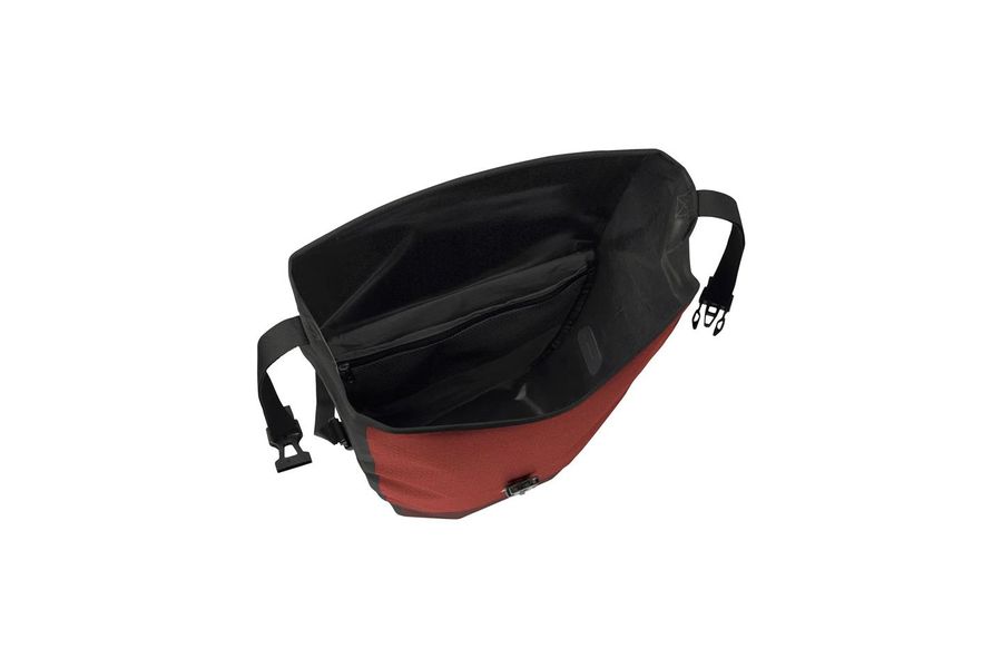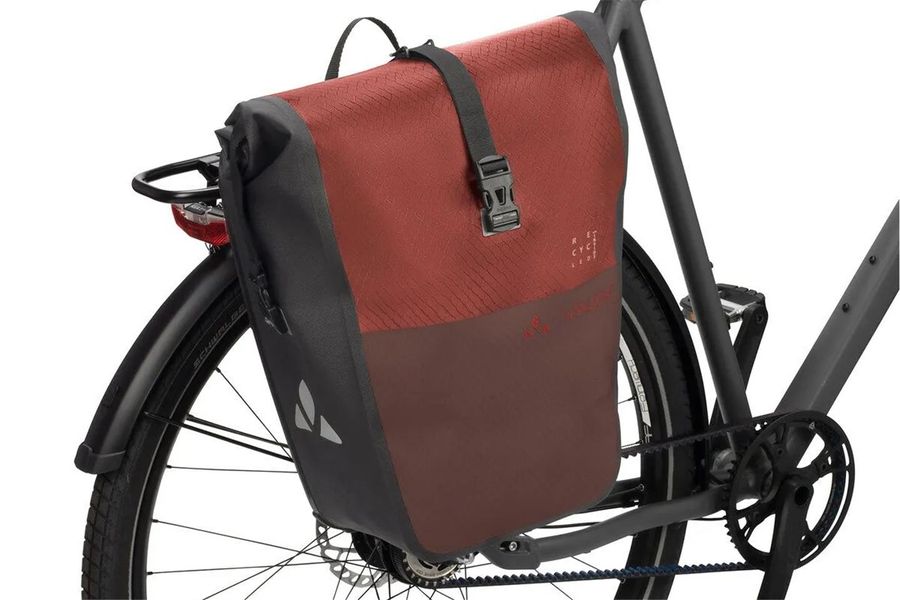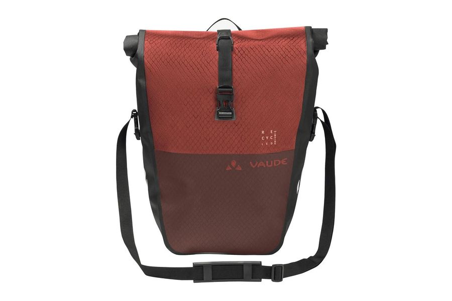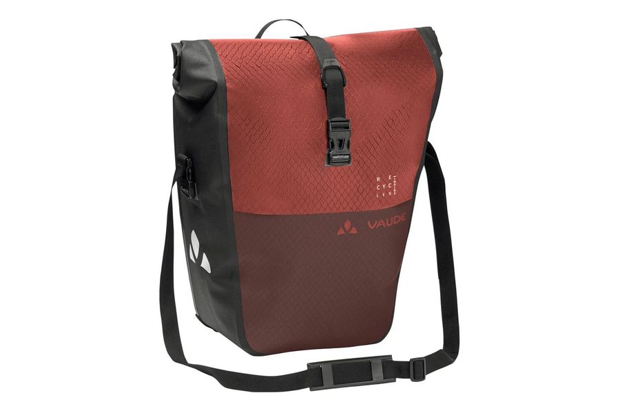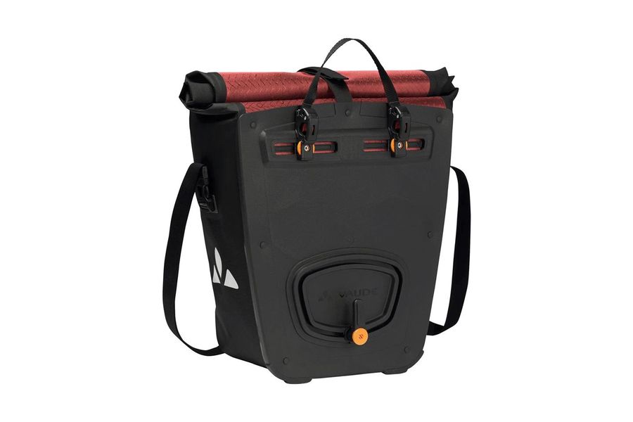 Fahradpendler*innen und Radreisende werden die Fahrradtasche für das Hinterrad lieben! Die wasserdichte Hinterradtasche wird aus recycelten Materialien am deutschen VAUDE Standort in der Nähe des Bodensees hergestellt. Sie lässt sich durch den Wickelverschluss auf die benötigte Größe komprimieren und absolut dicht verschließen. Für sichere Aufbewahrung von Kleinteilen oder Dokumenten sorgt eine integrierte Organizer-Innentasche mit Reißverschluss. Die einzelne Fahrradtasche für das Hinterrad ist mit einer stabilen Rückenplatte ausgestattet und wird mit dem QMR 2.0-System stabil rechts oder links am Gepäckträger befestigt. Die Haken sind über einfach bedienbare Handrädchen justierbar. Mit einem kleinen Bügelschloss (z. B. TSA-Schloss II) kann sie direkt am QMR-Haken verriegelt werden. Mit Reflexelementen bedruckt. Lieferumfang: eine einzelne Fahrradtasche mit 24 l Volumen, die auf jedem Gepäckträger mit runden Rohren (bis 16 mm Durchmesser) befestigt werden kann. Die Aqua Back Single kann um diese praktischen Zubehör-Taschen ergänzt werden: Sortyour Back, Sortyour Business und Addita Bag. Der abnehmbare Tragegurt ermöglicht ein bequemes Tragen über der Schulter. Die Tasche ist mit Eco Finish umweltfreundlich wasserabweisend ohne Fluorcarbone (PFC) ausgerüstet. Das VAUDE Green Shape-Label steht für ein umweltfreundliches, funktionelles Produkt aus nachhaltigen Materialien.