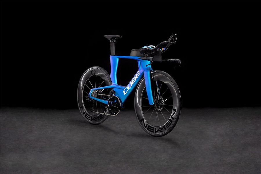 Developed in close collaboration with World champion Lucy Charles-Barclay, the Aerium C:68X SLT frame's premium C:68X® carbon construction incorporates flexible and adaptable hydration and storage options, including the ability to add up to two hydration systems for longer races. The CUBE cockpit puts everything you need at your fingertips, thanks to a wide range of adjustment. A Newmen STREEM Aero/Sprint TT 60/80 Vonoa wheelset – shod with Continental's Grand Prix 5000 TT tyres and aero valves – is the perfect aero match for our wind tunnel-tested frame, giving you extra watts to translate into faster forward progress. And Shimano's inimitable Dura-Ace Di2 groupset – with 2x12 gearing, built-in powermeter and hydraulic disc brakes – delivers precise shifts and on-demand braking with perfect precision. And, should you wish to revert to 1x gearing without a front derailleur, there's a cover for the mounting area to preserve the frame's aero performance.