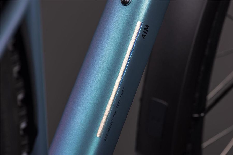 With the Aim FE we're redefining versatility. The included full-length mudguards, luggage carrier and lighting system mean it has everything you need right out of the box. There's a threaded bottom bracket and Internal Cable Routing, and the flat disc mount integrates seamlessly with the included kickstand. Carefully thought-out geometry includes a lower top tube for more confident handling, and there's plenty of room to run wide, grippy and comfortable 2.25in tyres. The Size Split system has an expanded range, too, so however tall you are there'll be an Aim FE that fits perfectly.