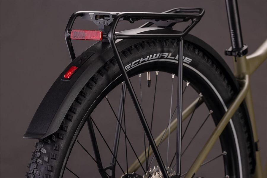 Can one bike really do it all? At CUBE, they think the answer is "yes" – and you're looking at it. Mudguards, a lighting system, kickstand and versatile luggage carrier give you the tools you need to take on the weekday commute or a dash across town. Meanwhile the 100mm suspension fork, Shimano Deore 1x12 gears, Shimano hydraulic disc brakes and grippy Schwalbe 2.25in tyres are all you need to keep on riding when the tarmac ends. And thr Size Split system means there's a perfectly proportioned Aim SLX FE for every rider. It's ready for anything.