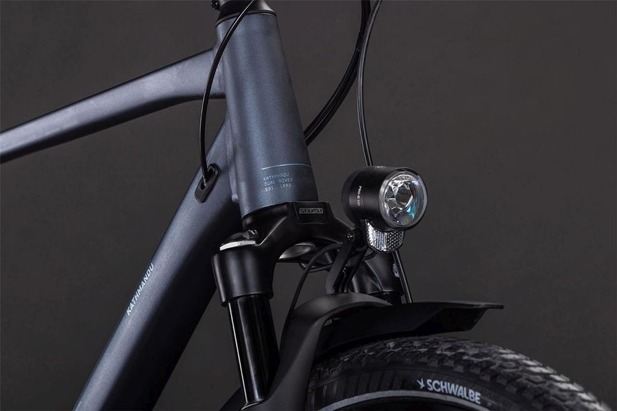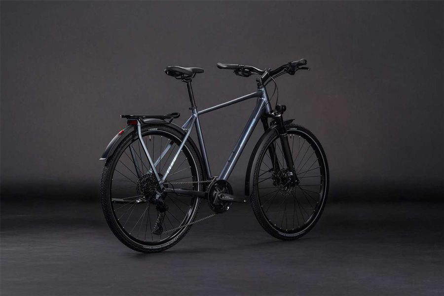 From zipping across town to tackling mountain passes you've never ridden before, the Kathmandu EXC from CUBE is designed to get you there – and back – in comfort and style. CUBE chose Shimano's Cues 2x11 gears for their ease of use and reliability. Then they added powerful Shimano hydraulic disc brakes and Schwalbe's 47mm Marathon Mondial tyres, so you know you're in full control at all times. Finally, CUBE selected an easily adjustable Suntour air suspension fork to take the edge off rough road surfaces. With the Integrated Carrier 3.0 and a full complement of accessories – including mudguards, kickstand and lights – you've everything you need. Just jump on and go.