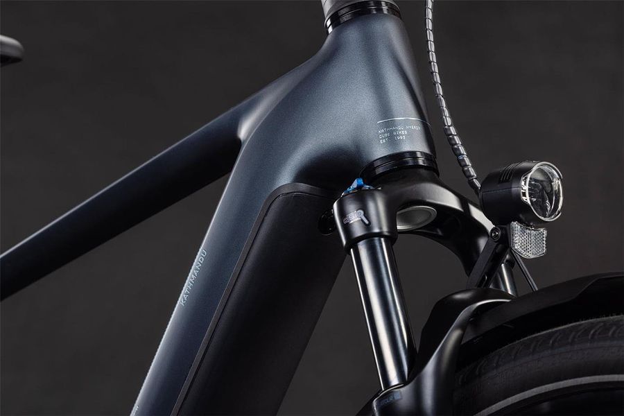 The CUBE Kathmandu Hybrid's design is classically elegant – familiar, even – but it's stuffed full of innovation and clever touches. The neatly housed Bosch CX drive and 800Wh PowerTube battery are just the start. Efficient Comfort Geometry is designed around a 100mm travel suspension fork, for better control even when the going gets rough. Integrated cables complement the frame's clean lines, while a UDH dropout is tough, versatile and future-proof. And, of course, there's an integrated chain guard mount and the tough, sturdy and exceptionally neat Integrated Carrier 3.0, so you can carry everything you need for your adventures.