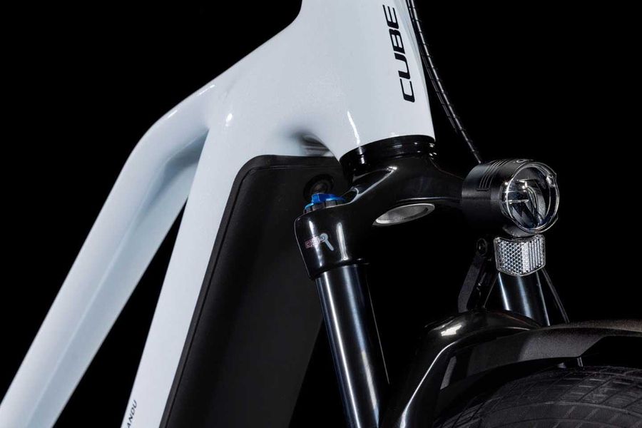 The frame of the CUBE Kathmandu Hybrid may look unspectacular at first glance - the second glance reveals its elegance, its class and the many innovations and clever details. The Bosch CX motor and PowerTube battery, aesthetically and neatly integrated into the design, is just the beginning. Our Efficient Comfort Geometry works harmoniously with the 100 mm suspension fork, which optimises control, especially in difficult conditions. In addition, the internal cable routing plays into the hands of the clean look of the chassis and significantly reduces maintenance work. What else? A versatile, almost indestructible UDH for easy availability of spare parts, an integrated chain guard and our stable, robust, beautifully designed IC 3.0 integrated luggage carrier, which has room for everything you need to take on an adventure tour.