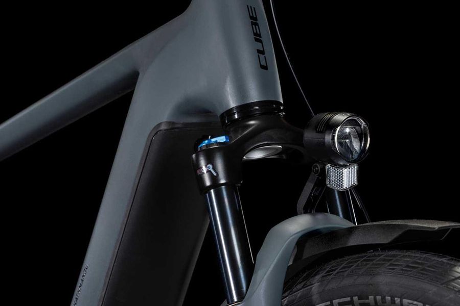 The frame of the CUBE Kathmandu Hybrid may look unspectacular at first glance - the second glance reveals its elegance, its class and the many innovations and clever details. The Bosch CX motor and PowerTube battery, aesthetically and neatly integrated into the design, is just the beginning. Our Efficient Comfort Geometry works harmoniously with the 100 mm suspension fork, which optimises control, especially in difficult conditions. In addition, the internal cable routing plays into the hands of the clean look of the chassis and significantly reduces maintenance work. What else? A versatile, almost indestructible UDH for easy availability of spare parts, an integrated chain guard and our stable, robust, beautifully designed IC 3.0 integrated luggage carrier, which has room for everything you need to take on an adventure tour.