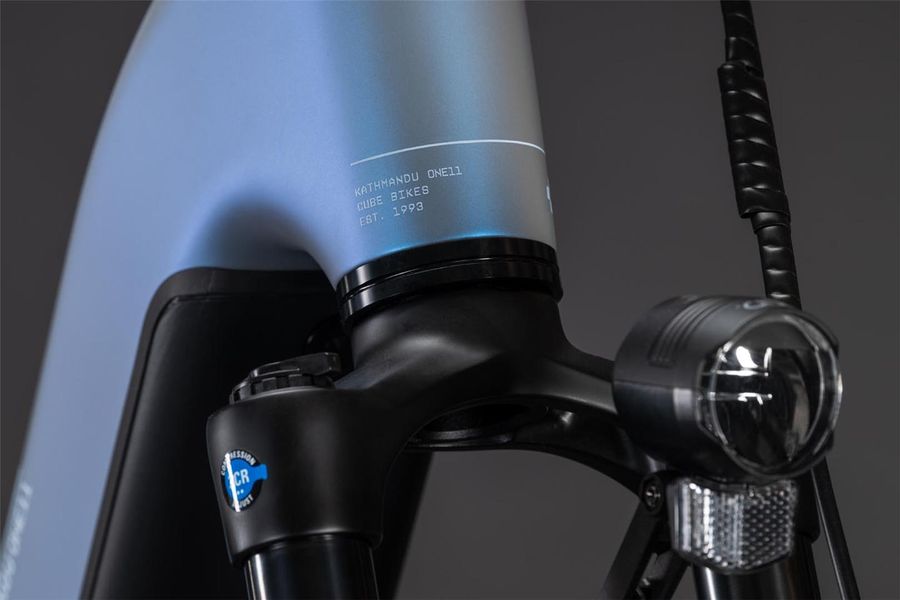 Combining everything CUBE knows about full suspension and rugged touring bikes in a single frame, the Kathmandu Hybrid ONE11 HPC from CUBE represents a new breed of Bosch-powered adventure bikes. The accessible Easy Entry design makes use of a sophisticated High Performance Carbon front end, housing a powerful Bosch CX drive and 800Wh PowerTube battery. There's 100mm of rear-wheel travel from an incredibly neatly sited trunnion-mount shock, while the IC 3.0 rear carrier is incorporated into the aluminium rear triangle. Integrated Cable Routing complements the frame's clean looks, the derailleur hanger is UDH-compatible, and a chain guard is fitted as standard. It's all there so that you can ride further... in comfort.