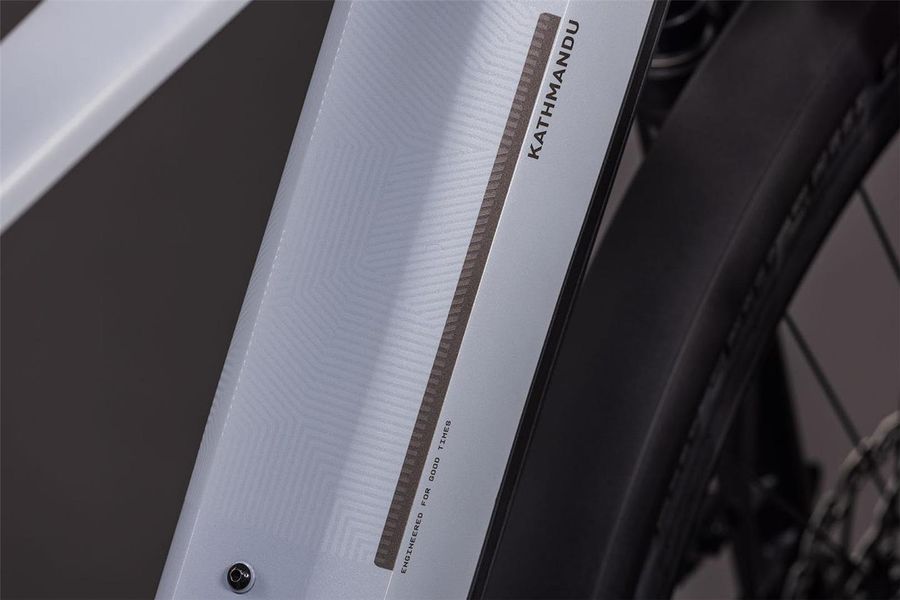 The CUBE Kathmandu Hybrid's design is classically elegant – familiar, even – but it's stuffed full of innovation and clever touches. The neatly housed Bosch CX drive and 800Wh PowerTube battery are just the start. Efficient Comfort Geometry is designed around a 100mm travel suspension fork, for better control even when the going gets rough. Integrated cables complement the frame's clean lines, while a UDH dropout is tough, versatile and future-proof. And, of course, there's an integrated chain guard mount and the tough, sturdy and exceptionally neat Integrated Carrier 3.0, so you can carry everything you need for your adventures.