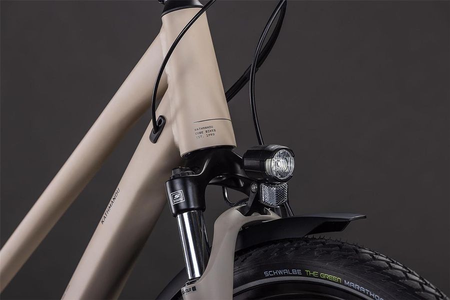 CUBE design expertise is the name of the game for the Kathmandu's Trapeze frame. Its Integrated Carrier 3.0 is designed to work seamlessly with our ACID mudguard. They've fitted a flat mount for the rear disc brake – it also accommodates the kickstand – and used Smooth Welding to give the frame joints a tidy, organic appearance. But it's not all about looks. CUBE also equipped the rear end with a thru-axle and added a tapered head tube for improved rigidity and steering precision, even when fully laden. With Internal Cable Routing to complement the frame's clean lines, CUBE reckon they've thought of everything. Just don't forget your toothbrush.