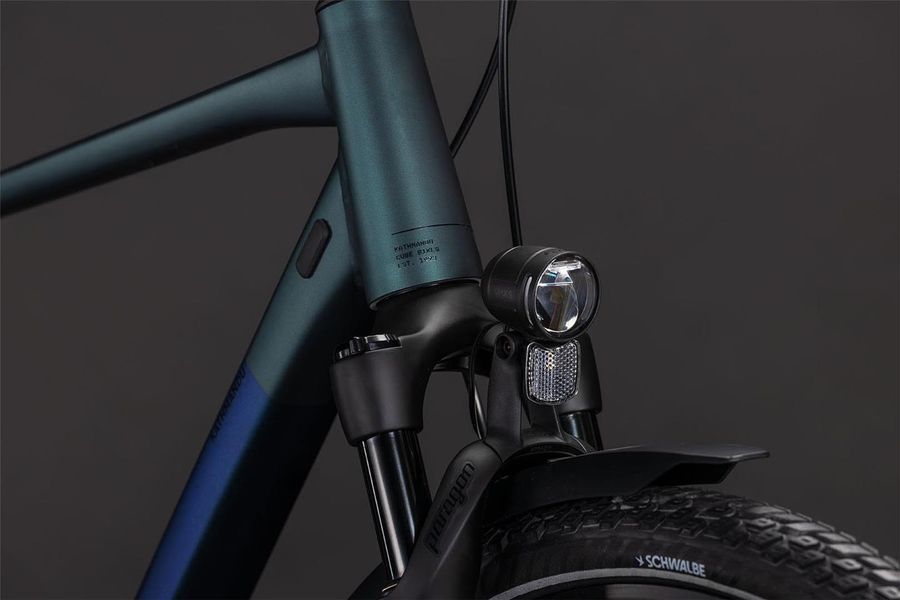 It's the detail that makes the Kathmandu SLT from CUBE so special. It's designed to be comfortable, which is why CUBE began by fitting a smooth RockShox Paragon Gold air suspension fork. The sturdy elegance of the Integrated Carrier 3.0 is matched by the straightforward practicality of the ACID mudguards, lighting set and kickstand. Powerful Shimano Cues hydraulic disc brakes work with the smooth-rolling and grippy Schwalbe Marathon Mondial tyres to bring you safely to a halt, whatever the weather. And the icing on the cake is Shimano's Cues Di2 Q Auto 1x11 gears, which shift automatically as you pedal... so you're always in the right gear. Powered by a simple rear hub dynamo system, there's no need for you to do anything... but ride. Freedom on two wheels...