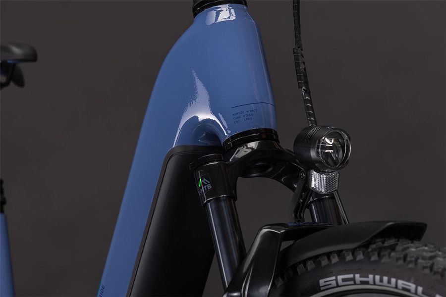 The Nuride Hybrid's Easy Entry frame does exactly what you'd expect it to do, making riding a simple pleasure with no acrobatics required. Designed to accommodate a 100mm suspension fork for extra comfort and control, it also features generous tyre clearances – even with the supplied mudguards. Integrated cables complement the frame's clean looks and the 800Wh PowerTube battery and Bosch CX drive are neatly incorporated into the frame structure. There's an integrated chain guard and, with the included mudguards, lights and kickstand plus the sturdy Semi Integrated Carrier 2.0, you've everything you need for two-wheeled adventures.