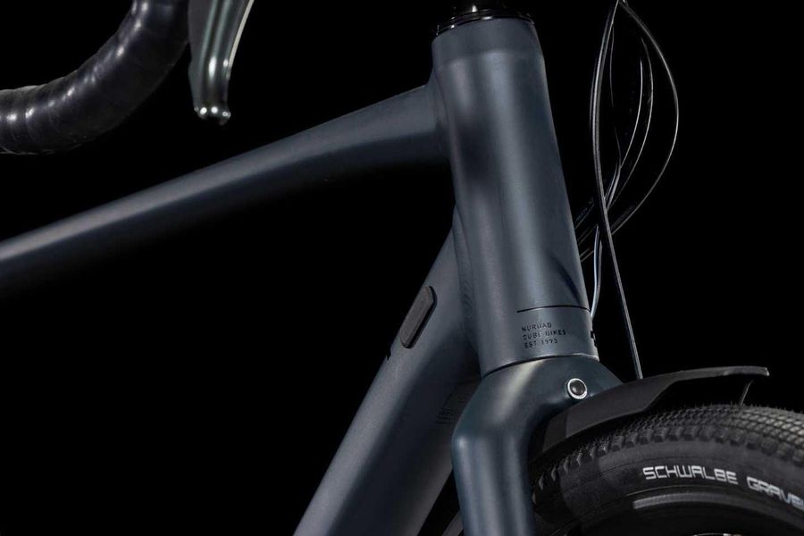 To create the Nuroad FE CUBE took inspiration from their race and cyclocross bikes, then threw a little mountain bike DNA into the mix. There's plenty of clearance for big, grippy and comfortable 40mm tyres, even with the included full-length mudguards. There's an exceptionally tidy rear luggage carrier, and we included a kickstand and a full lighting system. Neat Internal Cable Routing keeps gear shifts grit- and mud-free for longer. Quick-release wheels are easy to fit and remove for transport or storage. The full carbon fork isn't just lightweight – it also helps reduce vibration from the road and features lowrider rack mounts. And with sizes ranging from XS to XL, it's simple to find the perfect fit.