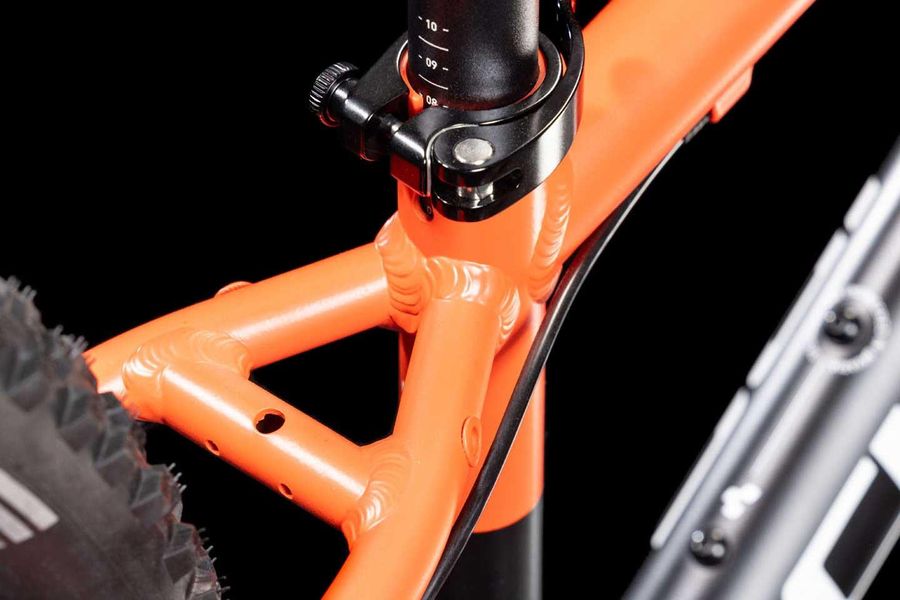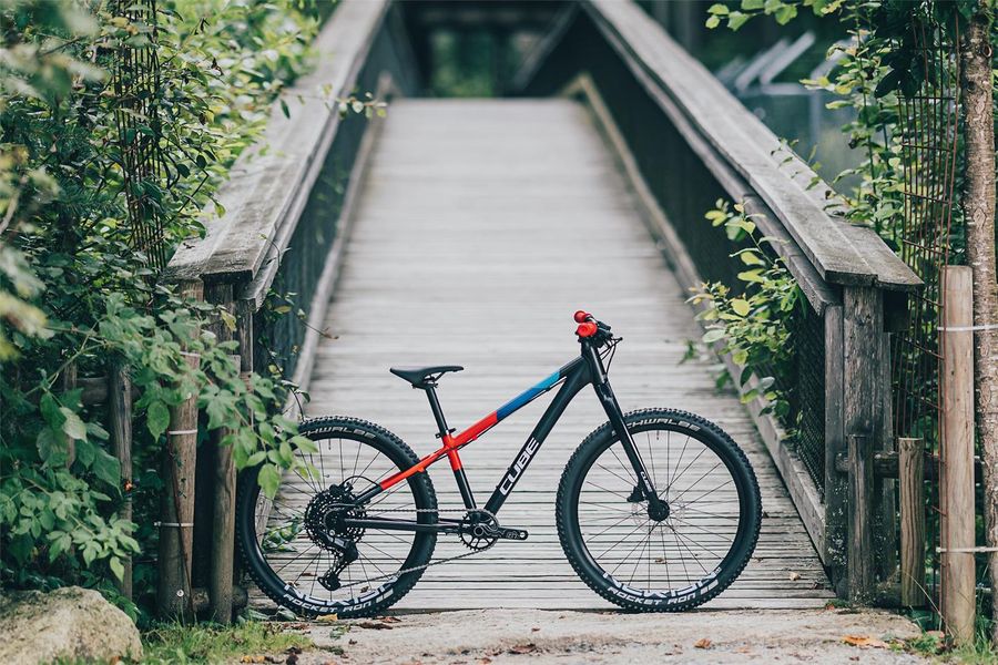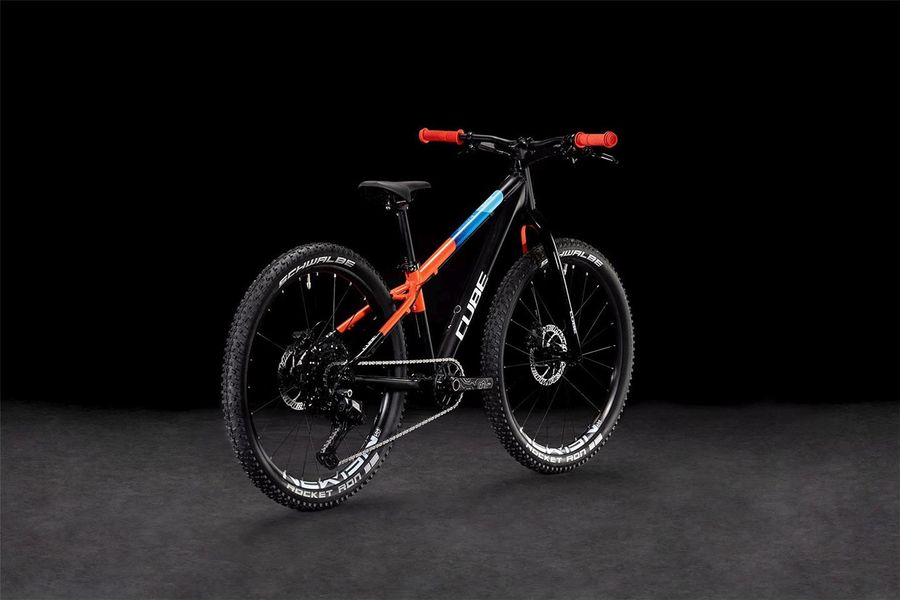 The Reaction 240 is made from the same kind of heat-treated 6061 aluminium tubes that you'll find on the performance adult bikes. CUBE also uses the same mechanical tube-forming process to adjust tube shapes for the best combination of strength and weight, as well as tyre clearance. There's a full carbon fork with thru axle, to save even more weight. Disc brake mounts and cable routing allow for the greater safety and stopping power of discs. And a replaceable derailleur hanger insures against expensive repairs in the event of minor mishaps.