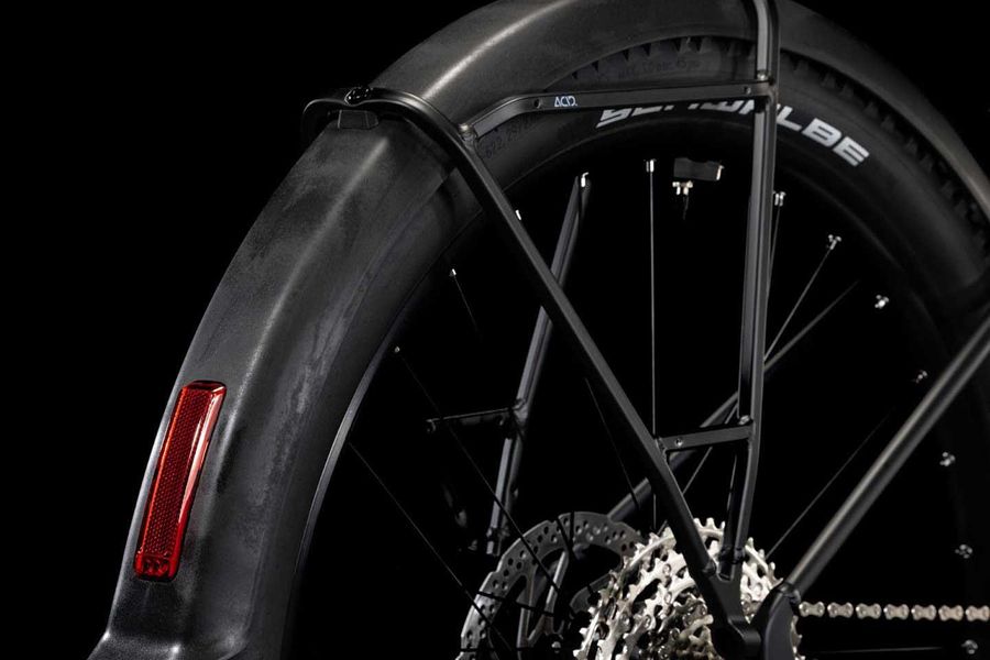 The Reaction Hybrid Allroad is full of neat touches, and we're not just talking about the included mudguards, carrier, lighting set and kickstand. With the 800Wh PowerTube battery neatly concealed and the 85Nm Bosch CX drive housed securely, its svelte lines disguise lots of clever features. It's PowerMore ready, making it easy to add up to 250 Wh of extra battery capacity. The integrated seat clamp and cable routing complement the clean aesthetic, whilst a UDH gear hanger makes it as future-proof as possible. There's a built-in chainguide mount too and, with Size Split, it's easy to find the perfect fit for every rider. We've thought of everything, so you can just ride.