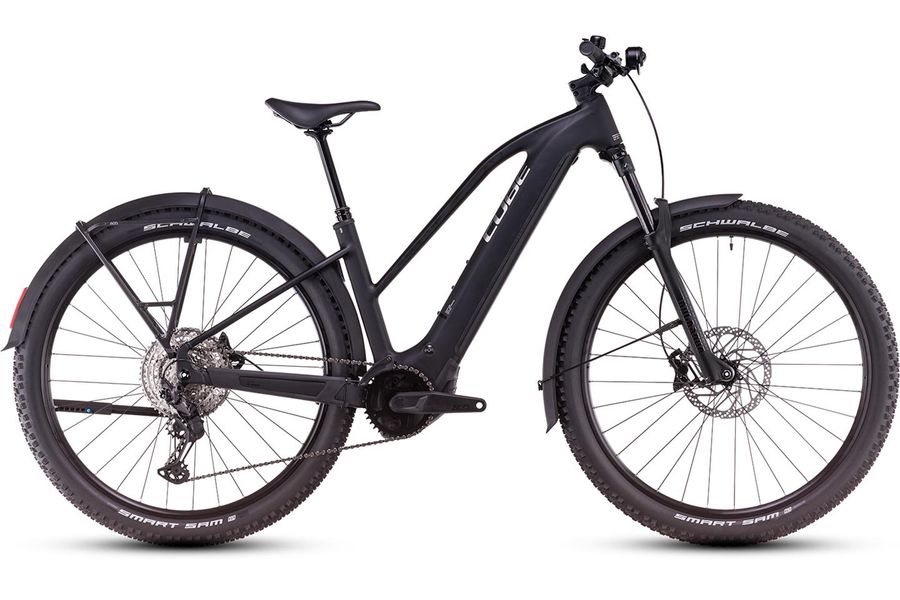 Wherever you look on the Reaction Hybrid Race Allroad, you can tell we've put a lot of thought into it. There's the mudguards, sturdy luggage carrier, neat lighting set and stable kickstand, for a start. A remote dropper seatpost, so you can tackle more challenging trails more easily. Then we added 4-piston Shimano hydraulic disc brakes and grippy Schwalbe 2.6in tyres, for safe stopping in any weather. An easily adjustable RockShox Recon Silver Air suspension fork with 120mm travel (100mm on the smallest frame sizes and Easy Entry frame options), for more comfort and control. And Shimano's wide-ranging, super-reliable XT 1x12 gears, to help make even the most challenging route easier. We sweated the detail, so you can just enjoy the ride.