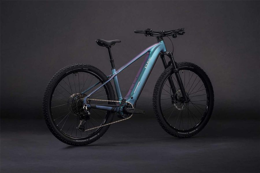 With its rugged go-anywhere capability and 800Wh battery, there's not much that can hold the Reaction Hybrid Race back. It's even PowerMore-ready, so you can add an optional extra 250Wh battery for even more range. The Smart System-equipped Bosch CX drive has the power to make any route easier, and Sram Transmission 90 12-speed gears put the right ratio literally at your fingertips. CUBE chose wide, grippy Schwalbe 2.6in tyres and paired them with an air-sprung Rockshox Recon Silver fork for the best blend of comfort and control. With strong 4-piston hydraulic disc brakes, you're assured of safe and predictable stopping in any conditions. And there's a dropper post, too, so you can take the path less travelled, and see where it leads.