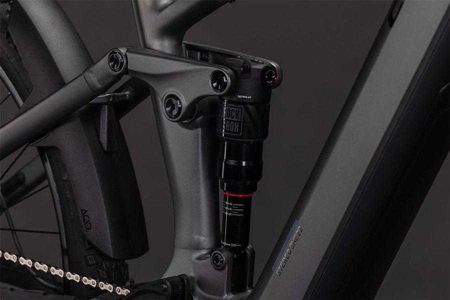 The Stereo Hybrid ONE22 Race 800 delivers more trail performance while staying highly versatile. With a RockShox Psylo Silver RC fork (120 mm) and Deluxe Select R shock, it’s ready for rough terrain. Shimano XT 12-speed shifting and MT520 brakes stand for sporty precision. The Bosch Performance CX motor (100 Nm) and 800 Wh battery take you comfortably on any tour. A bike for touring riders with sporty ambitions.