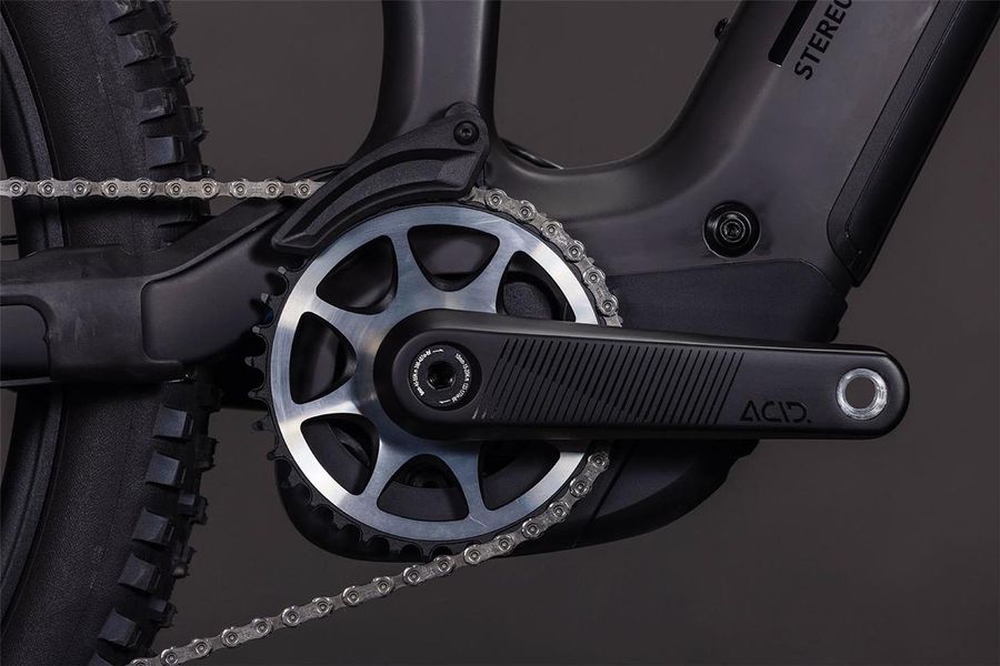 The Stereo Hybrid ONE77 HPC frame – with 170mm travel front and rear and a mullet wheel setup with 29in front and 27.5in rear – is all you need for big days out on big mountain trails. But, as with all CUBE designs, the devil is in the detail. So, for example, CUBE added Integrated Cable Routing for super-clean looks, and then threw in an angle-adjustable headset so that you can tweak the handling to your taste. The 800Wh PowerTube battery sits unobtrusively in the carbon down tube, just above the Bosch CX drive. A UDH dropout on the aluminium rear triangle is tough and future-proof, and they also added a Direct Mount chain guide to keep you driving forwards even when the going gets rough.