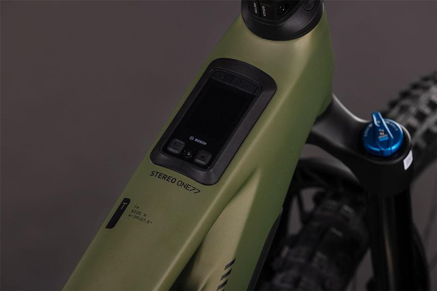 The Stereo Hybrid ONE77 HPC frame – with 170mm travel front and rear and a mullet wheel setup with 29in front and 27.5in rear – is all you need for big days out on big mountain trails. But, as with all CUBE designs, the devil is in the detail. So, for example, CUBE added Integrated Cable Routing for super-clean looks, and then threw in an angle-adjustable headset so that you can tweak the handling to your taste. The 800Wh PowerTube battery sits unobtrusively in the carbon down tube, just above the Bosch CX drive. A UDH dropout on the aluminium rear triangle is tough and future-proof, and CUBE also added a Direct Mount chain guide to keep you driving forwards even when the going gets rough.