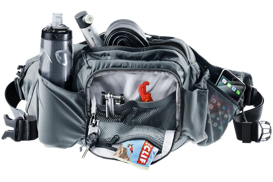 The deuter Pulse 5 is the perfect hip bag for anyone who wants maximum freedom of movement on their bike whilst still being fully equipped. It offers well-designed storage space for tools, a smartphone and valuables, whilst the main compartment, hip belt pockets and organiser unit allow for quick access. Thanks to its compatibility with a 0.75 L bottle or a 1.5 L hydration system, it is suitable for both short rides and longer tours.