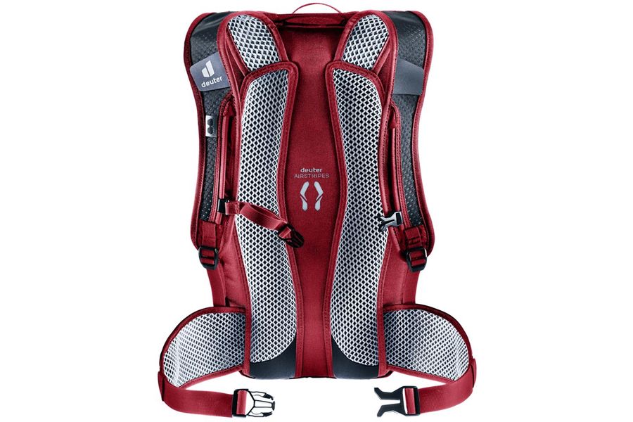 - Airstripes System: Anatomically shaped shoulder straps and a chest strap ensure a stable and comfortable fit. The ventilated back system, featuring dimpled foam and AirMesh, maximises air circulation and can be individually adjusted thanks to aluminium struts.