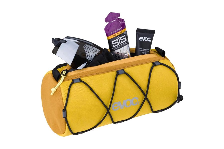 The Evoc Handlebar Roll is a unique upcycled handlebar bag made from materials of past collections to carry your essentails on any road or gravel ride.