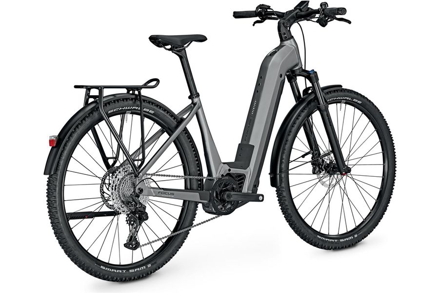 With the Aventura² series, German manufacturer Focus has taken trekking and touring to its logical conclusion. This versatile all-rounder combines the robust character of a mountain bike with the comfort of a road-ready trekking e-bike. The Aventura² is not only an ideal e-bike for everyday use in the city, but it also does not shy away from rough gravel and forest paths. Its comfortable wheels, which are equipped with 2.25 inch wide tyres, play a decisive role here. And the technical data of the frame and equipment also speak for themselves: the aluminium frame is approved for a system weight of up to 150 kilos. The sturdy luggage rack can handle a load of up to 25 kilos. And the rear wheel axle is officially approved for towing a trailer.