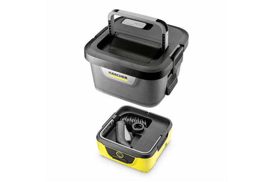 Compact and portable: the OC 4 is Kärcher’s cordless pressure washer for anyone who needs a cleaning solution on the go. Thanks to its built-in lithium-ion battery and large 8-litre water tank, you can clean without needing access to mains power or a water supply. Kärcher’s nozzle technology ensures gentle yet effective cleaning. The 2.8-metre-long coiled hose allows for flexible working with a wide range of movement. Thanks to the spray gun with a lock-on function, cleaning is comfortable and effortless. The included Bike Kit comprises a practical accessory bag with various accessories specifically designed for cleaning bicycles. The low pressure generated by the OC 4 is powerful enough to effortlessly remove mud, dust and dirt from the bike. Unlike with high-pressure cleaners, however, there is no risk of damaging sensitive components such as bearings, seals or hubs. Whether after a bike ride, straight at the bike park or at home in the garden – the OC 4 is the ideal solution for a quick clean in between. Minimal space requirement – for storage, the unit or the accessory bag can be stowed entirely inside the empty water tank.