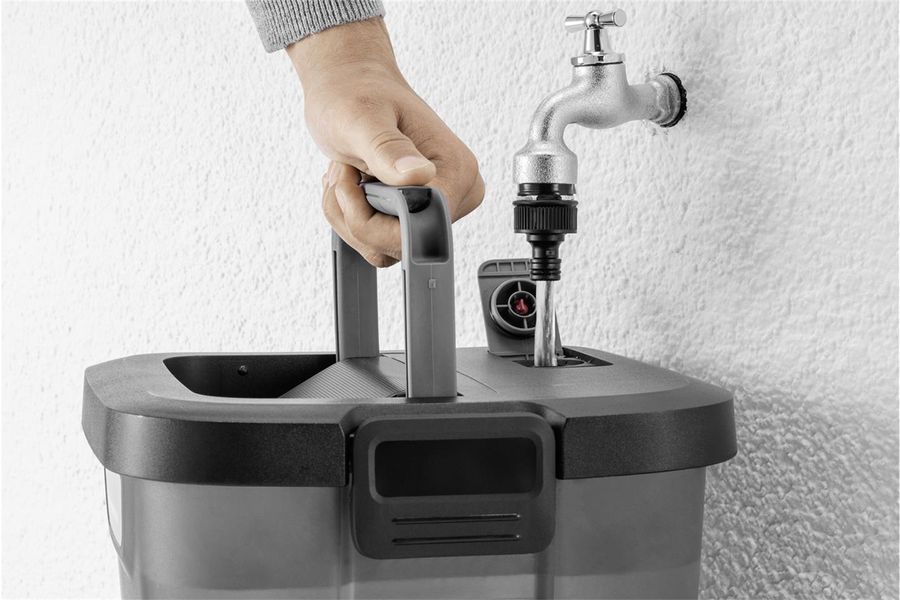 With its large 8-litre water tank and built-in battery, you can easily clean on the go, without needing access to water or mains power. The removable tank can be filled at any tap and, thanks to its leak-proof cap, can be transported with peace of mind, e.g. in the boot of a car. Versatile for cleaning bikes and many other cleaning tasks, e.g. garden and camping equipment, dogs, hiking boots or pushchairs.