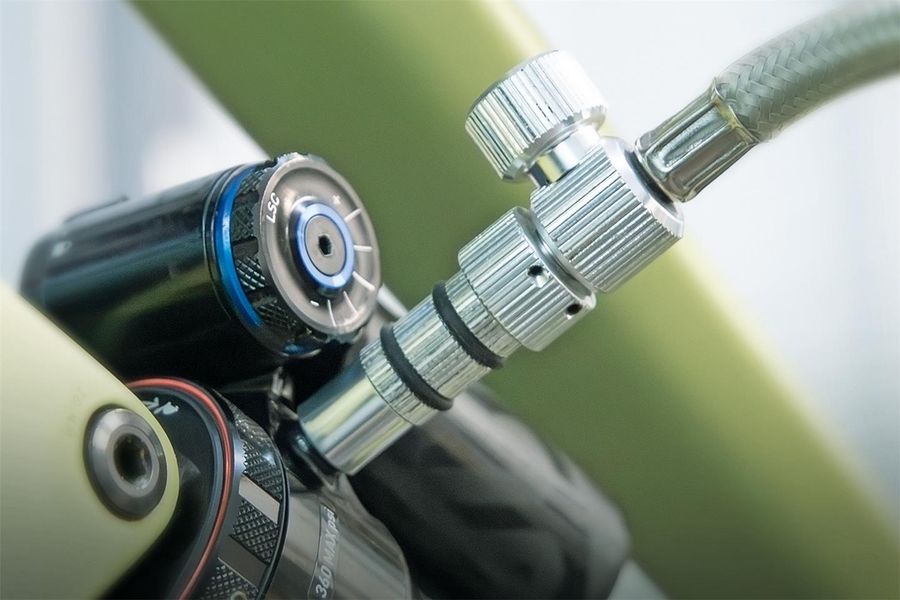 The Rennkompressor Suspension guarantees maximum power for air pressure adjustments on shock absorbers and suspension elements. The suspension version of the proven Rennkompressor NXT inspires both professional mechanics and ambitious hobby mechanics. With 400 PSI, it delivers plenty of pressure to shock absorbers and suspension forks, while the digital high-pressure gauge guarantees maximum measurement accuracy. The air pressure can be adjusted via a knurled screw for precise fine-tuning. The AV connection with 2-stage screw connection prevents pressure loss when screwing and unscrewing and ensures safe handling.