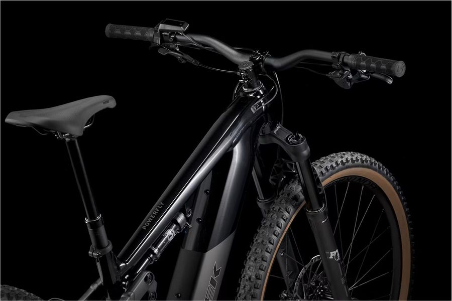 - The Powerfly+ FS provides a powerful boost on crisp climbs and reliable comfort on challenging descents - and takes you a long way out thanks to its long-lasting battery.