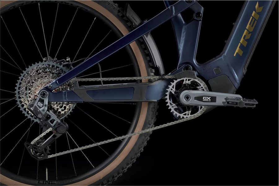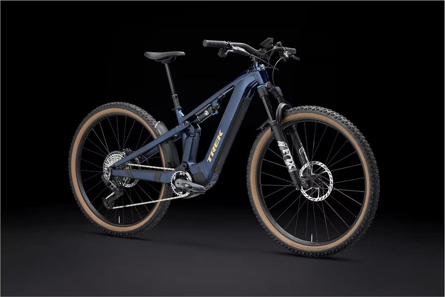 The Powerfly+ FS 8 is a high-performance, full-suspension e-mountainbike in a class of its own that is ready for any adventure. With 130 mm front and 120 mm rear suspension travel, the robust aluminium frame offers enough travel to fly through even the roughest trails with confidence. The powerful Bosch Performance Line motor and the 800 Wh RIB 2.0 battery ensure that you never have to turn round too early again. An Alpha Platinum aluminium frame with a Bosch Performance Line drive system with 250 W power and 85 Nm torque, including a removable, integrated PowerTube RIB 2.0 battery with a massive 800 Wh capacity and Purion 200 controller. A FOX Rhythm 36 with 130 mm travel and a FOX Float Rhythm rear shock with 120 mm travel. Tubeless-ready wheels with puncture-proof 2.4" tyres, a wireless SRAM GX Eagle AXS T-Type 12-speed drivetrain for clean gear changes, a Bontrager Line dropper post and hydraulic disc brakes.